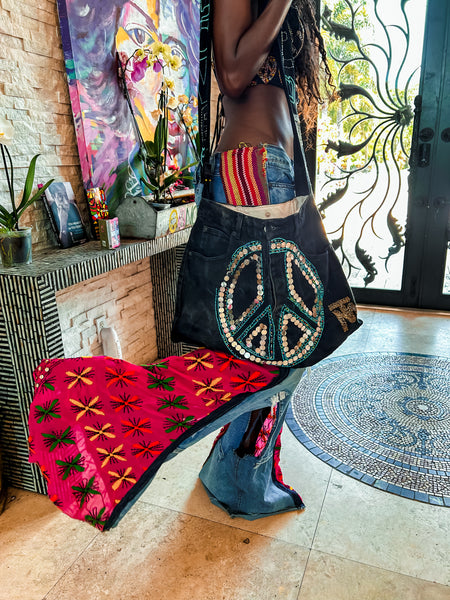 This Tanya Marie Peace Bag is the perfect accessory for any outfit, whether you're dressing it up or keeping it casual. With its unique design and versatility, you'll be turning heads and spreading good vibes wherever you go. #TMPeacebag-The Dark Rich Bohemian.