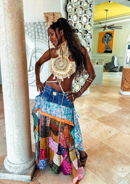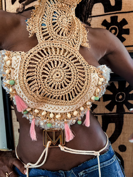 Elevate your festival look with the TM Coachella Straw High Neck top. Handmade with standout style, this halter pairs perfectly with any shade of denim.